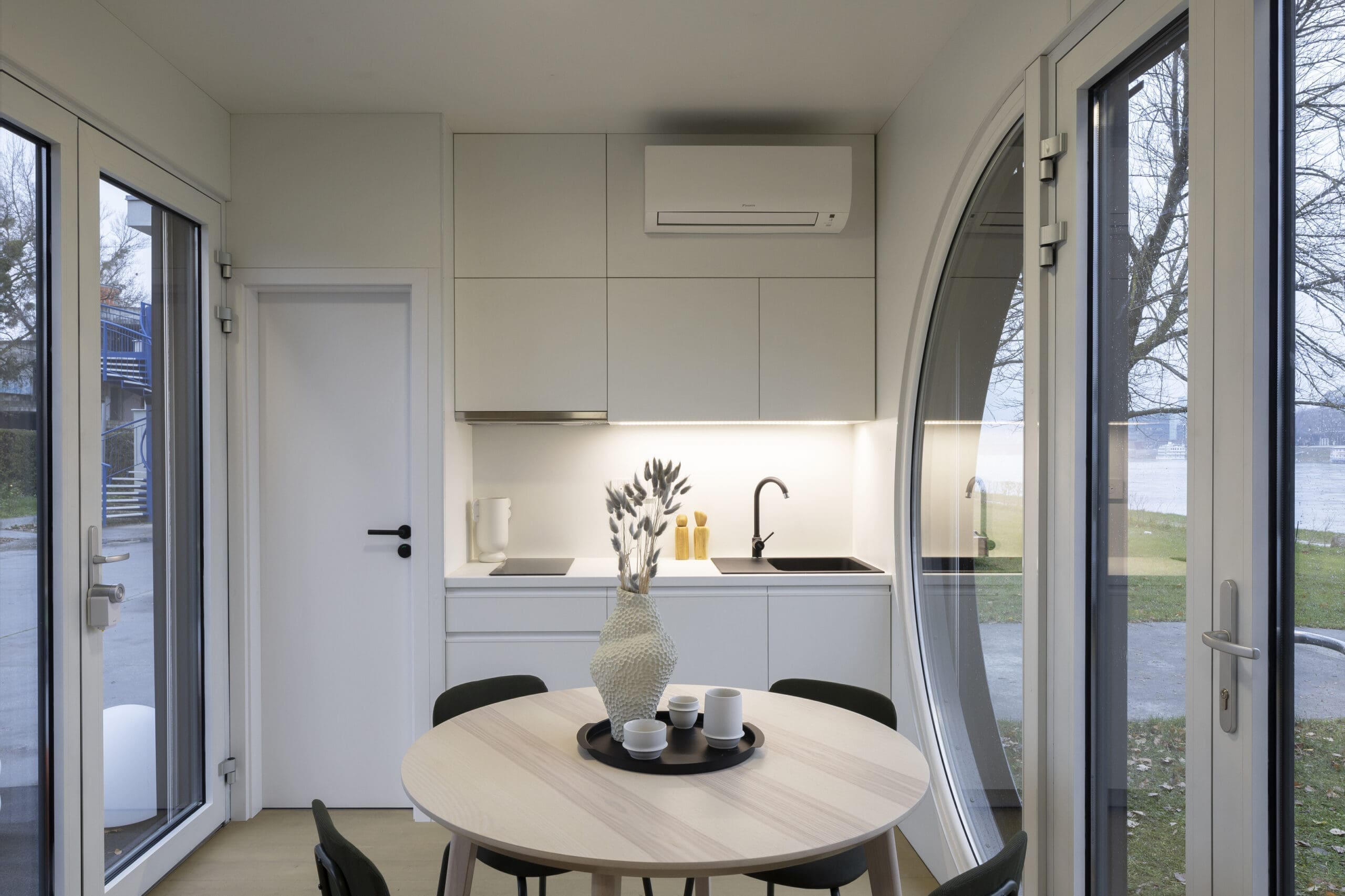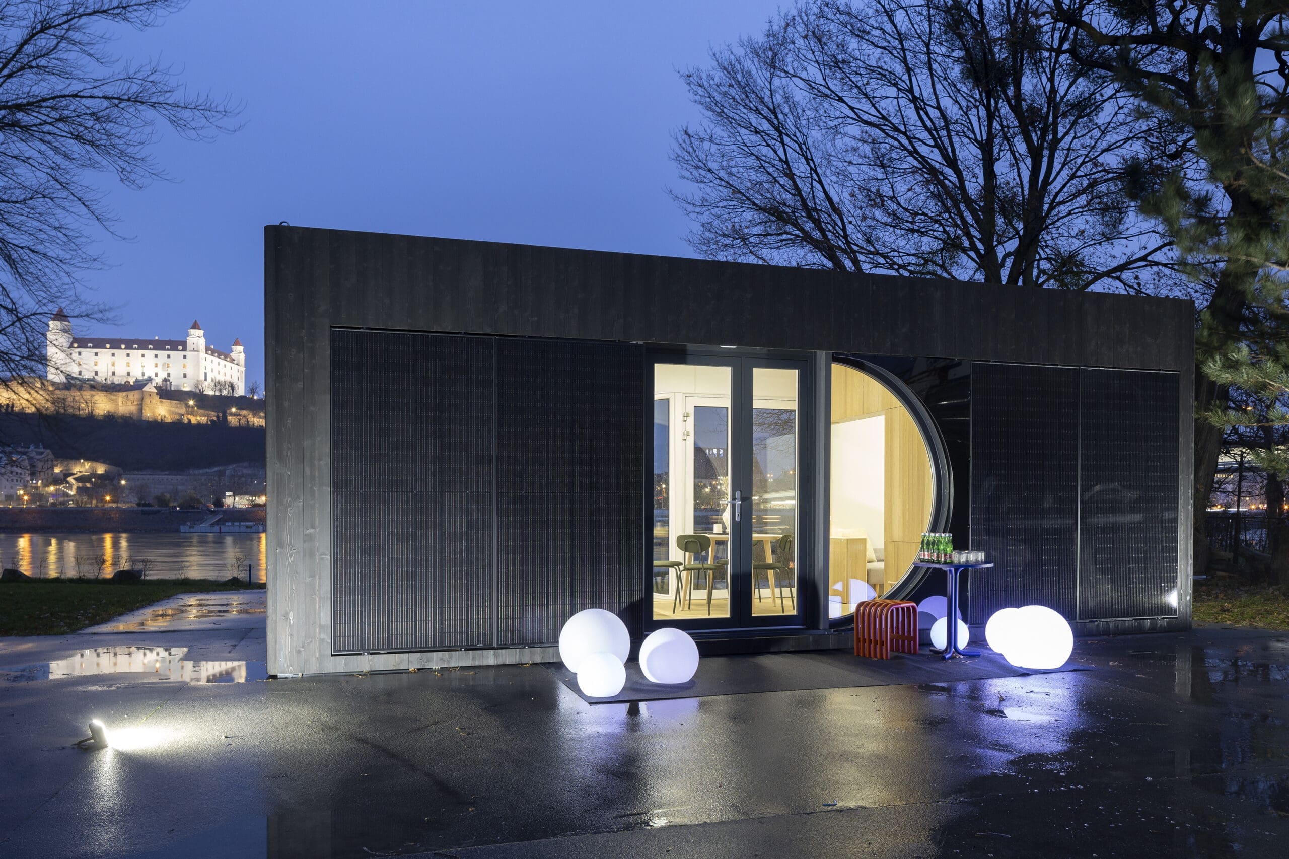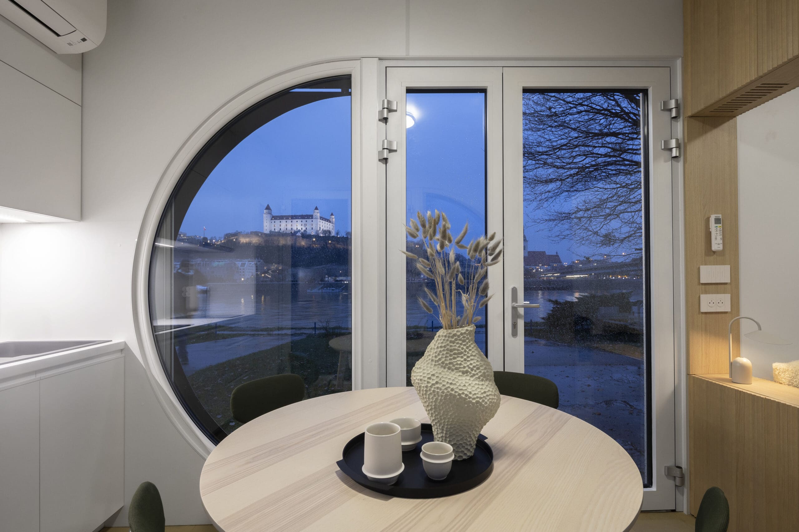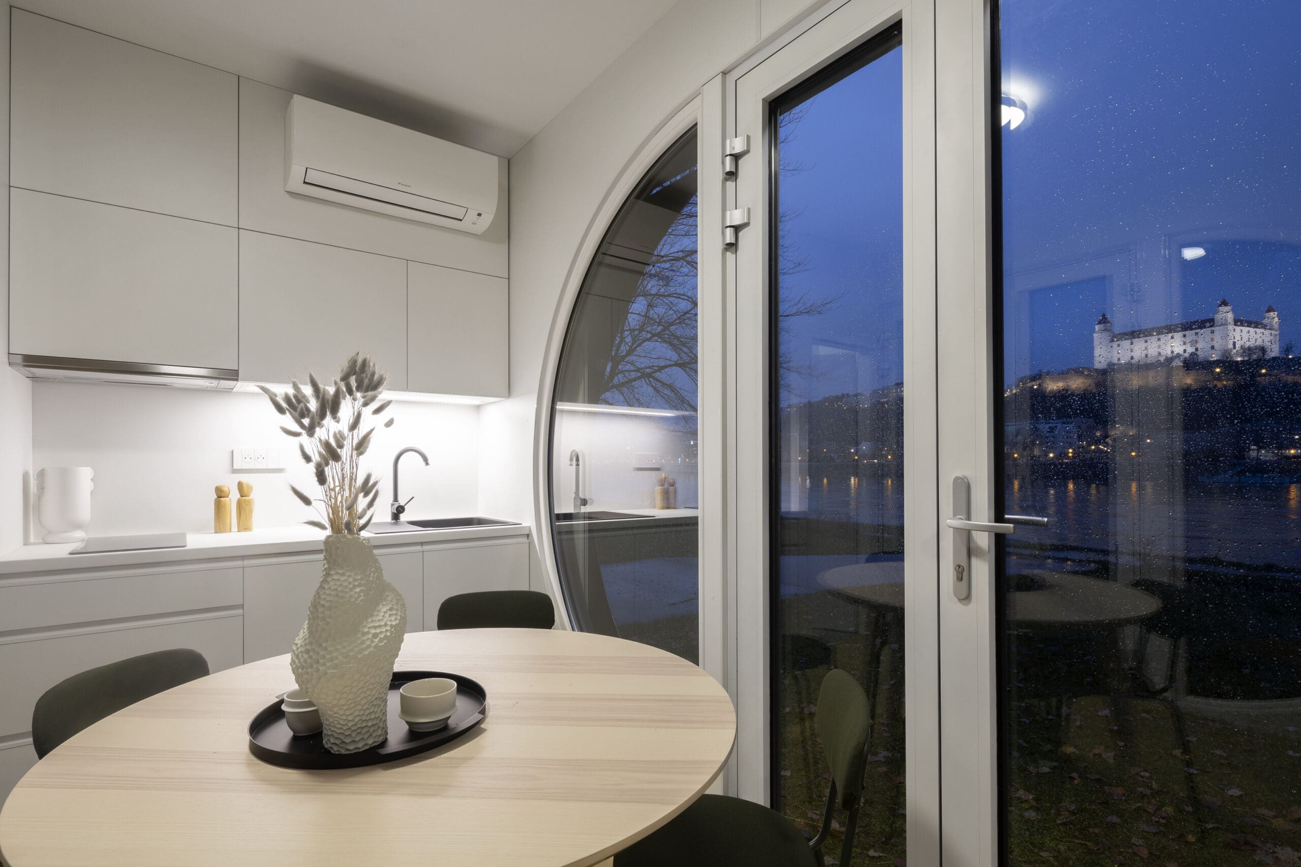 Kompaktný priestor je premyslene navrhnutý s multifunkčným nábytkom, šikovným úložným priestorom a vysokokvalitnými materiálmi, ktoré vytvárajú praktické a príjemné životné prostredie. Dom je vybavený vysokoúčinnými solárnymi panelmi a umožňuje celoročné bývanie mimo sietí bez obetovania moderného komfortu.
